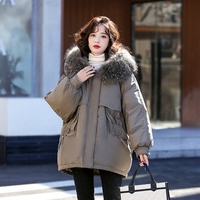 羽绒服女2021冬季百搭新款韩版洋气宽松立领地球白...