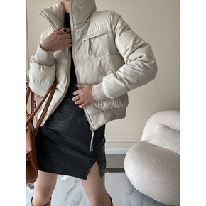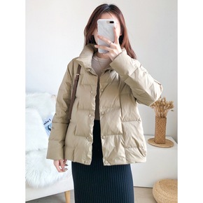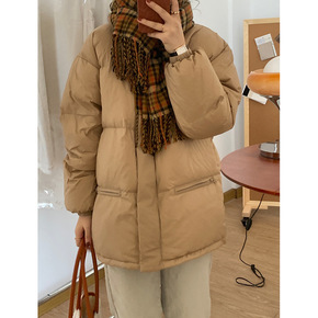 2021年冬装新款小个子羽绒服女短款焦糖色立领白鸭...