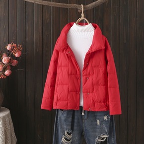 平湖2021冬新款白鸭绒外套轻便韩版轻薄羽绒服女立...