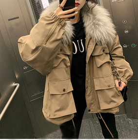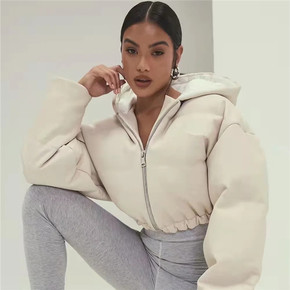 欧美风秋冬连帽加厚保暖短款棉衣 2021立领宽松羽...