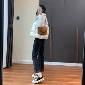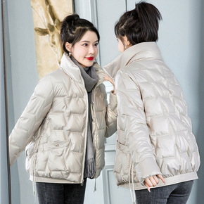 2022冬款羽绒棉衣女式韩版短款亮面休闲宽松长袖款...
