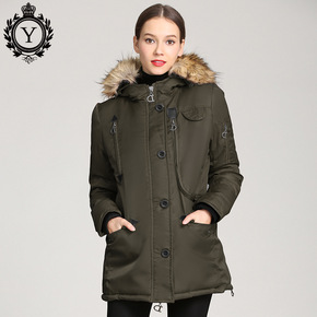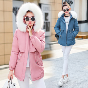 2020跨境冬新款女士棉服中长款收腰连帽大毛领多口...