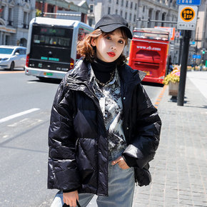 羽绒棉服女2021反季新款韩版宽松棉衣女短款亮面立...
