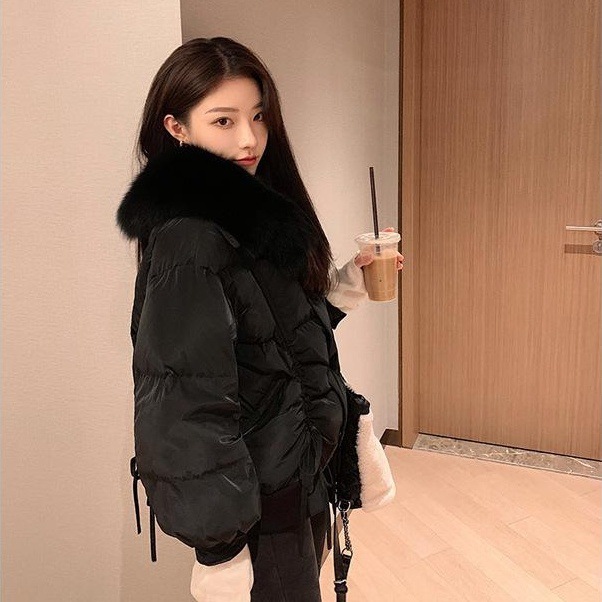 2021冬装新款韩版立领蝴蝶结柔软大口袋短款加厚面...