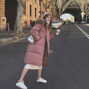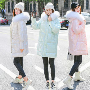 新棉袄女学生韩版宽松亮面中长款大毛领加厚面包服棉衣...