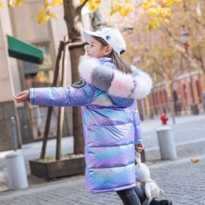 儿童羽绒服男女童中长款亮面中大童过膝加厚免洗炫彩洋...