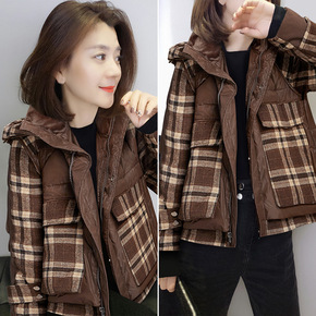 时尚咖啡色格子外套轻薄短款羽绒服欧洲站冬季女装20...