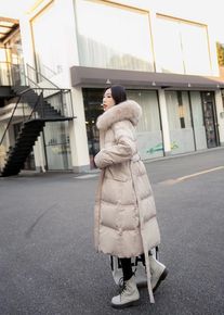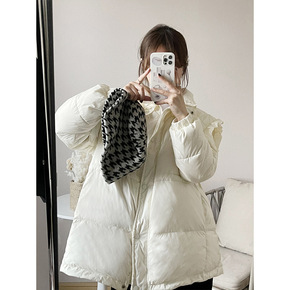 羽绒服女2021冬季宽松加厚米色皮白鸭绒轻薄保暖外...