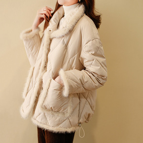 白鸭绒水貂毛拼接羽绒服女2021冬新款轻奢富美感保...