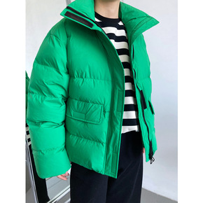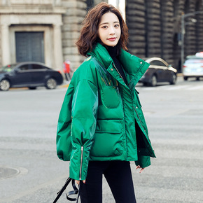 鹿西 短款羽绒服女2021新款立领魔术贴绿色面包服...