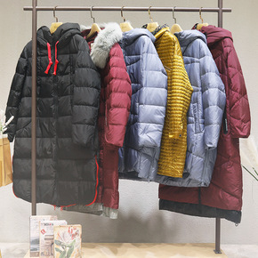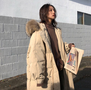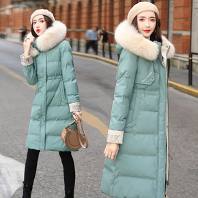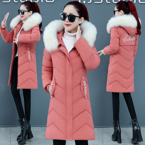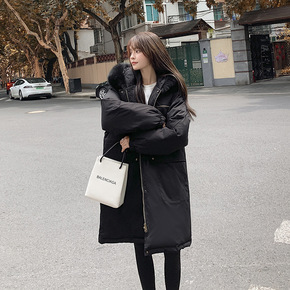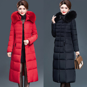 大毛领羽绒棉服女中长款冬季过膝棉衣洋气宽松大码加厚...