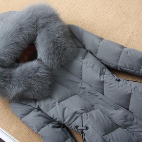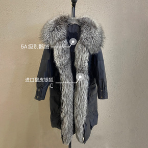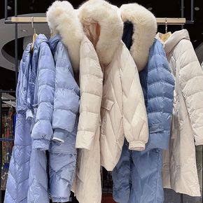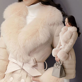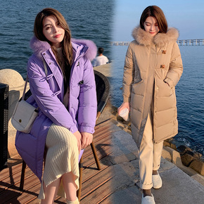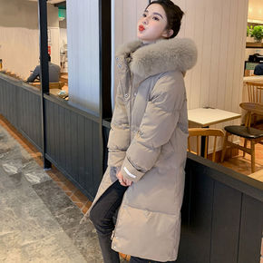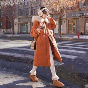 东大反季羽绒服女2021年新款冬中长款过膝大毛领白...