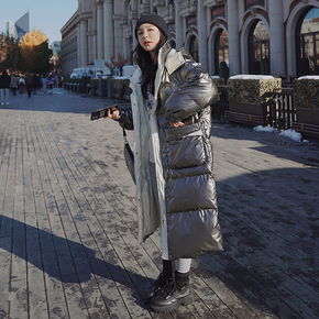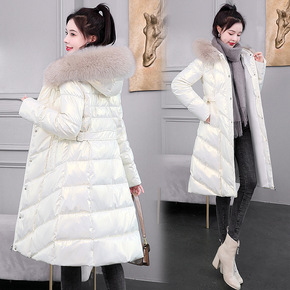 亮面羽绒棉服女中长款2021年冬季新款收腰过膝时尚...