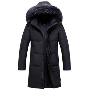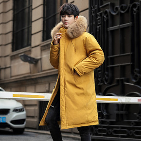 长款羽绒服男2021冬季新款白鸭绒大毛领连帽外套男...