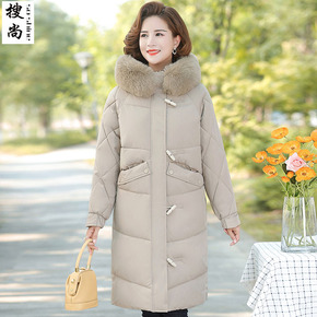 妈妈羽绒棉服女中长款洋气中老年女装冬季过膝棉衣外套...