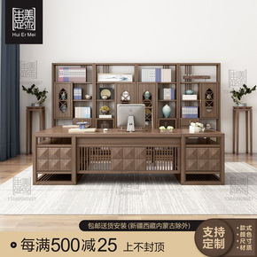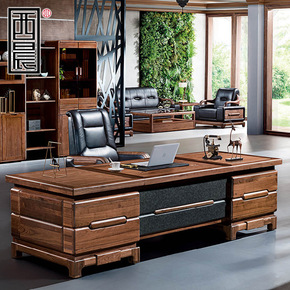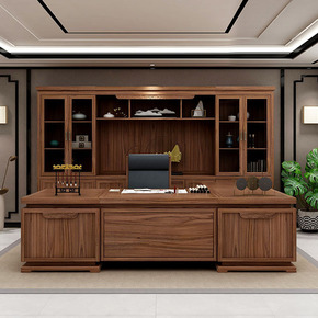 新中式办公桌全实木老板桌总裁桌高档大气大班台黑胡桃...