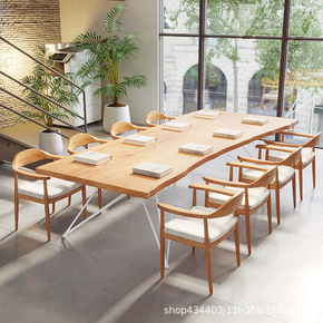 简约整板会议桌原木大板loft工业风办公桌长条大班...