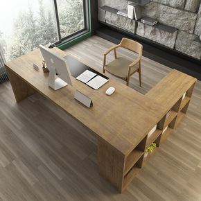 现代时尚全实木大板新中式办公桌办公室家具创意主管桌...
