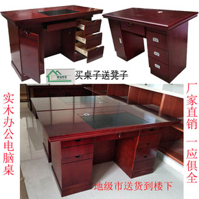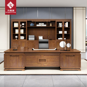 新中式办公桌椅组合实木老板桌工作台大气总裁桌大班台...