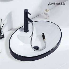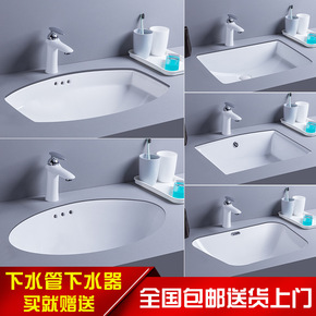 .台下盆洗手盆嵌入式陶瓷椭圆形方形卫生间家用石下盆...