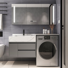岩板一体实木洗衣机阳台洗手洗脸盆柜组合简约轻奢智能...