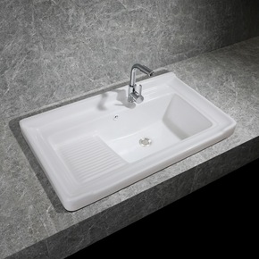 陶瓷洗衣盆带搓板卫生间台面台中盆半嵌入式洗漱池家用...