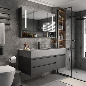 厂家直销智能轻奢岩板浴室柜组合套装卫生间现代洗手池...