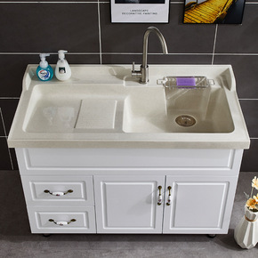 欧式实木洗衣柜阳台带搓板洗衣盆石英石台盆太空铝浴室...