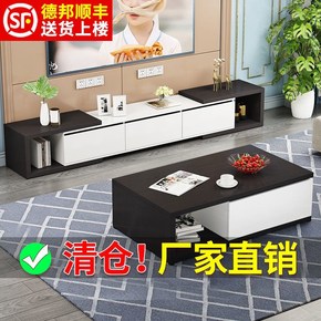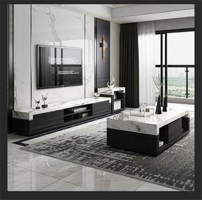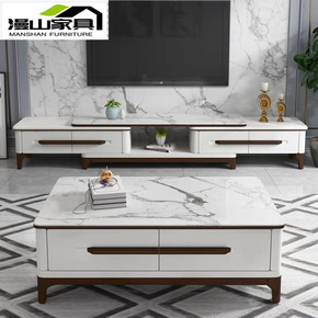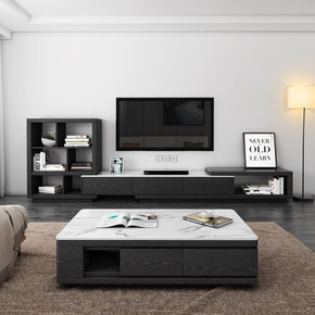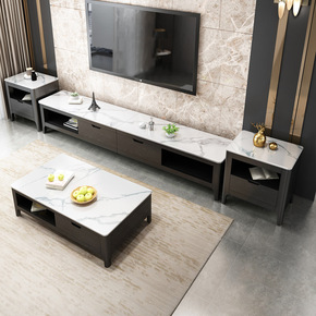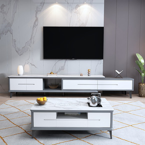 现代简约岩板茶几电视柜组合套装实木可伸缩家用小户型...