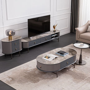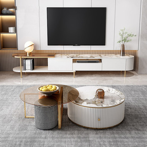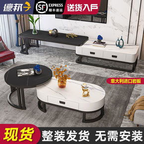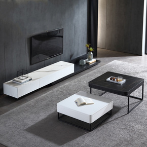 北欧茶几电视柜组合设计师创意伸缩家具意式岩板茶几边...