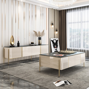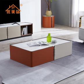 意式极简小户型现代简约客厅方形进口岩板马鞍皮茶几电...