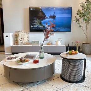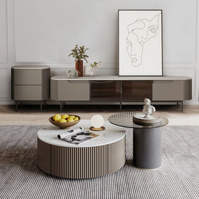 意式岩板大小圆茶几电视柜现代简约轻奢家用北欧小户型...