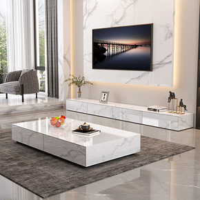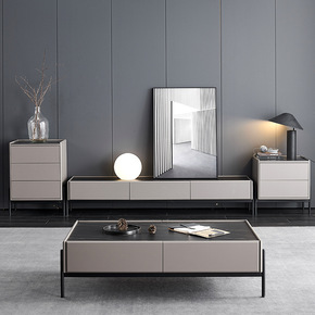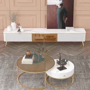 轻奢岩板茶几电视柜组合大小户型北欧简约现代客厅家用...