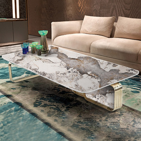 意式简约奢石茶几轻奢岩板茶几客厅小户型长方形茶几电...