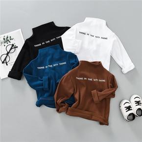 男童打底衫春秋2019新款中小儿童纯色半高领上衣洋...