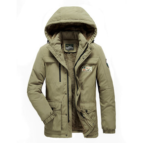 冬季跨境男士棉衣中长休闲棉服男加绒带帽男棉袄保暖男...