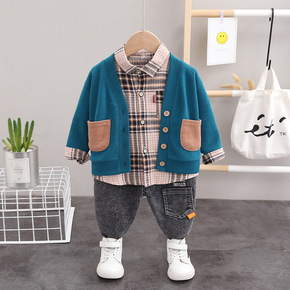 2020秋装新款中小童三件套批发儿童韩版洋气毛衣外...