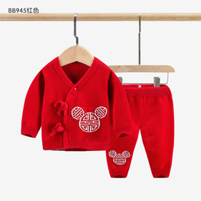 喜服初秋满月服新生儿哈衣婴儿系带和服针织衫毛衣春婴...