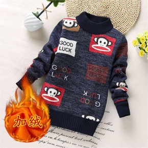 男童毛衣秋装高领加绒加厚儿童针织衫秋冬装洋气男孩中...