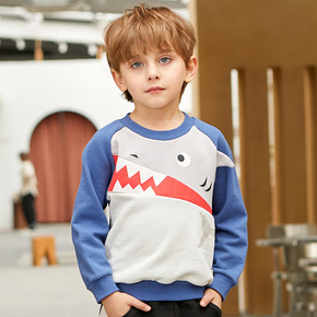 潮牌童装鲨鱼头经典款毛圈卫衣春季蓝色连帽卡通拉链衫...