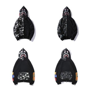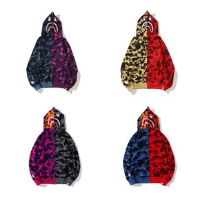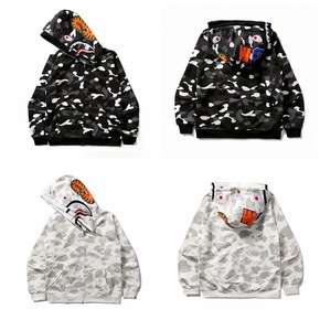 外贸跨境亚马逊批发日系潮牌鲨鱼头迷彩底纹连帽开衫卫...