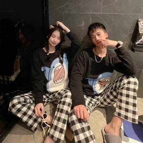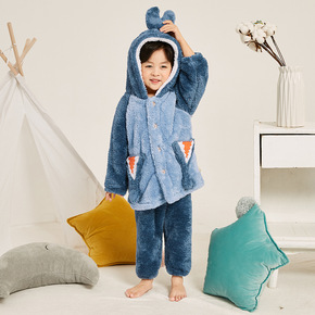 特价清仓儿童法兰绒睡衣秋冬男童男孩家居服套装三角鲨...