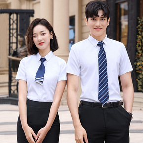 职业衬衫女短袖房地产修身免烫白色衬衣男保险销售工作...