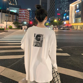 2021春秋新款宽松慵懒学生长袖纯棉T恤女百搭休闲...