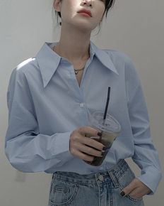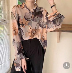 灰蓝色盐系雪纺衬衫女2021春夏季新款港味复古设计...