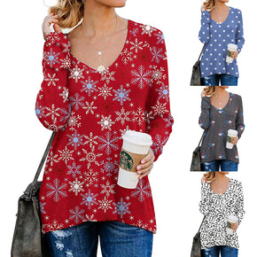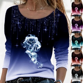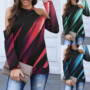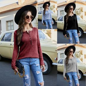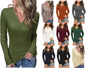 2021外贸女装秋季热卖欧美T恤 亚马逊新款休闲扣...