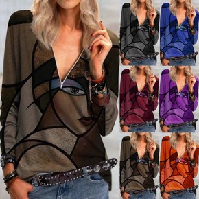 2021跨境欧美亚马逊秋冬新款女装双侧拉链V领拼接...
