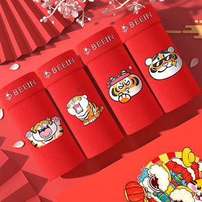 本命年内裤男属虎纯棉红短裤红色男士可爱大红虎年20...