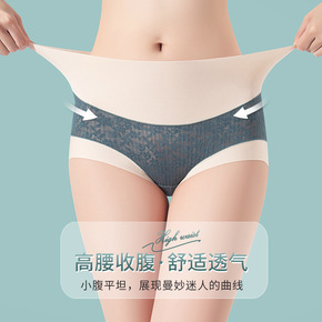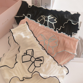 新款日系蕾丝女士内裤 无痕透气舒适性感高腰桑蚕丝抗...