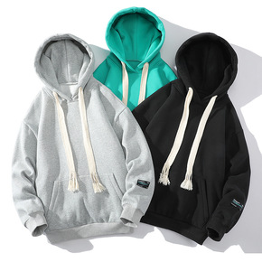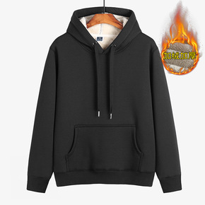 纯色加绒卫衣男士连帽潮流加厚秋新款保暖套头帽圆领上...